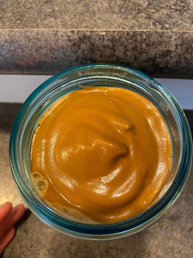 Mix with hand held mixer in measuring cup for at least 3 minutes until mixture is fluffy. Mine is darker than most as I use less sugar. Most recipes call for 2 tablespoons.
