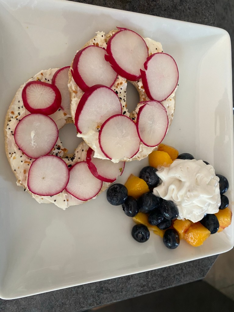 I use Aldi’s Everything Bagel Seasoning so much I keep it on my counter with my oils. I eat it on eggs, bagel thins, cottage cheese and vegetables. Be sure to give it a shake before you use it.