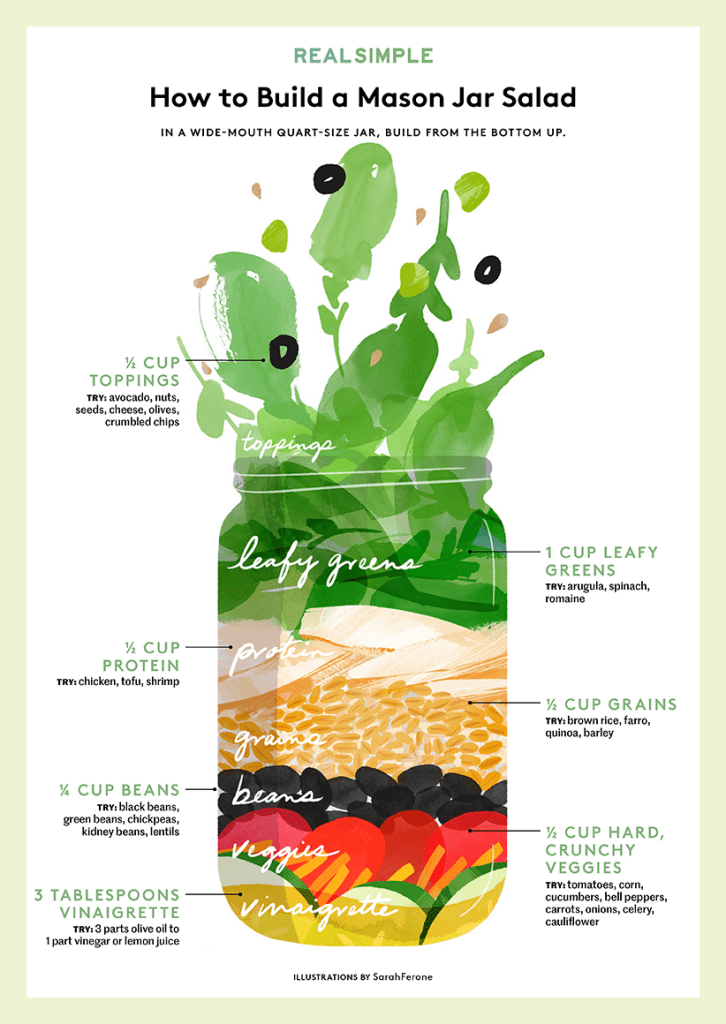 Use a large mason jar so you can add a good bit of lettuce and leave room up top so you can shake it. I have made so many variations of these as I use to eat them at my office or in my car, as I traveled a lot at my old job.