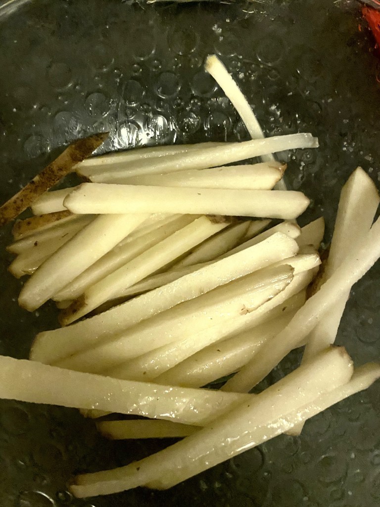 2 Russet Potatoes cut into 1/4 inch sticks and pat dry with a kitchen towel.
