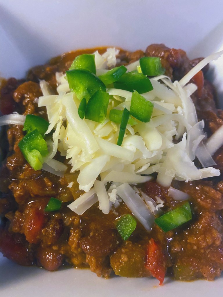 I don’t like a ton of beans in my chili and I prefer it on the thick side. Of course I like to add peppers to mine to kick up the veg factor. I also do not make mine that spicy as I get my heat factor from fresh sliced jalapeños as a topping.
