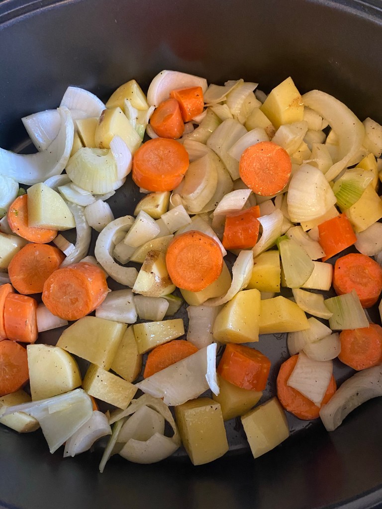 Remove roast to a plate and cover with foil. Continue to cook vegetables 5-10 more minutes. I like mine very roasted. If you do not then skip this step.