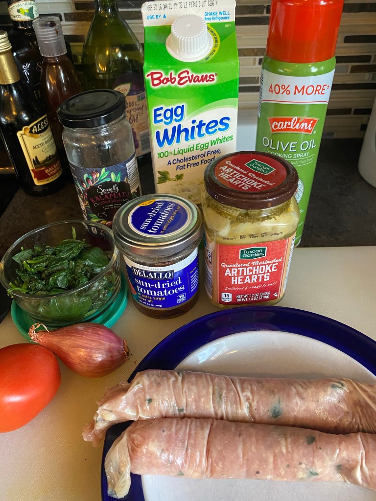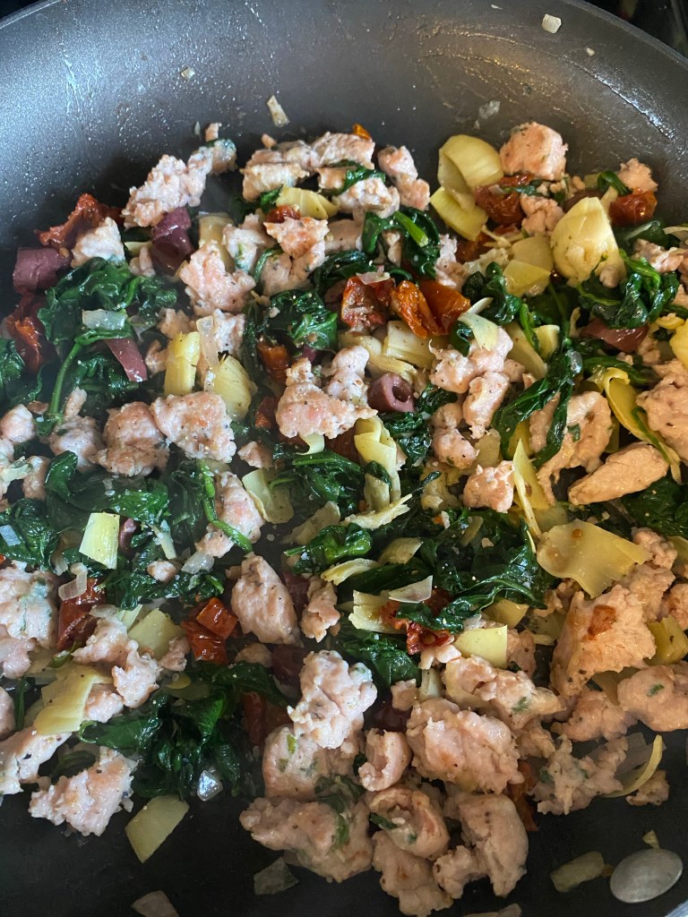 Mediterranean chicken sausage from Karns- it is amazing or any plain chicken sausage will work