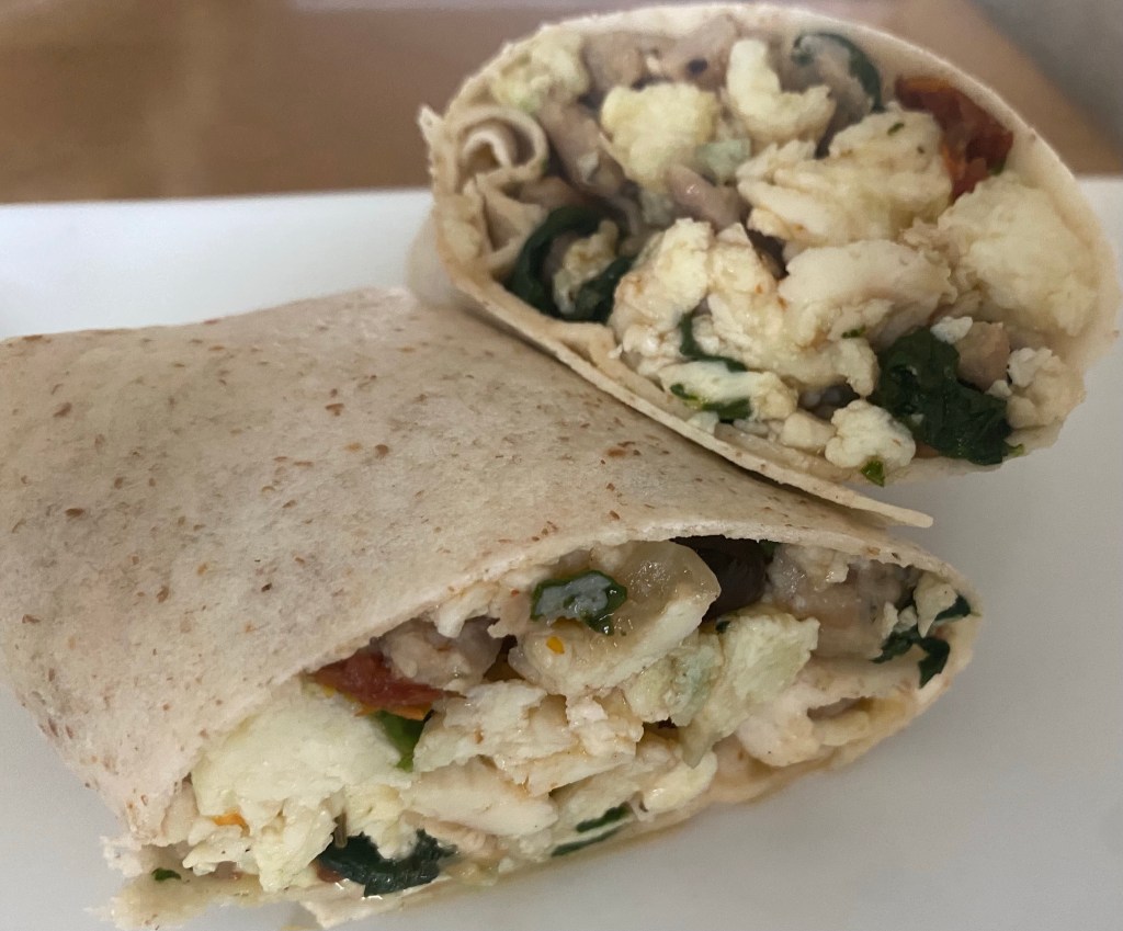 Remove everything from pan then add the egg whites. Let them cook on low to medium for a few minutes then stir. Continue to cook and stir until cooked through about 3-5 more minutes. Add vegetable mixture back in and stir.