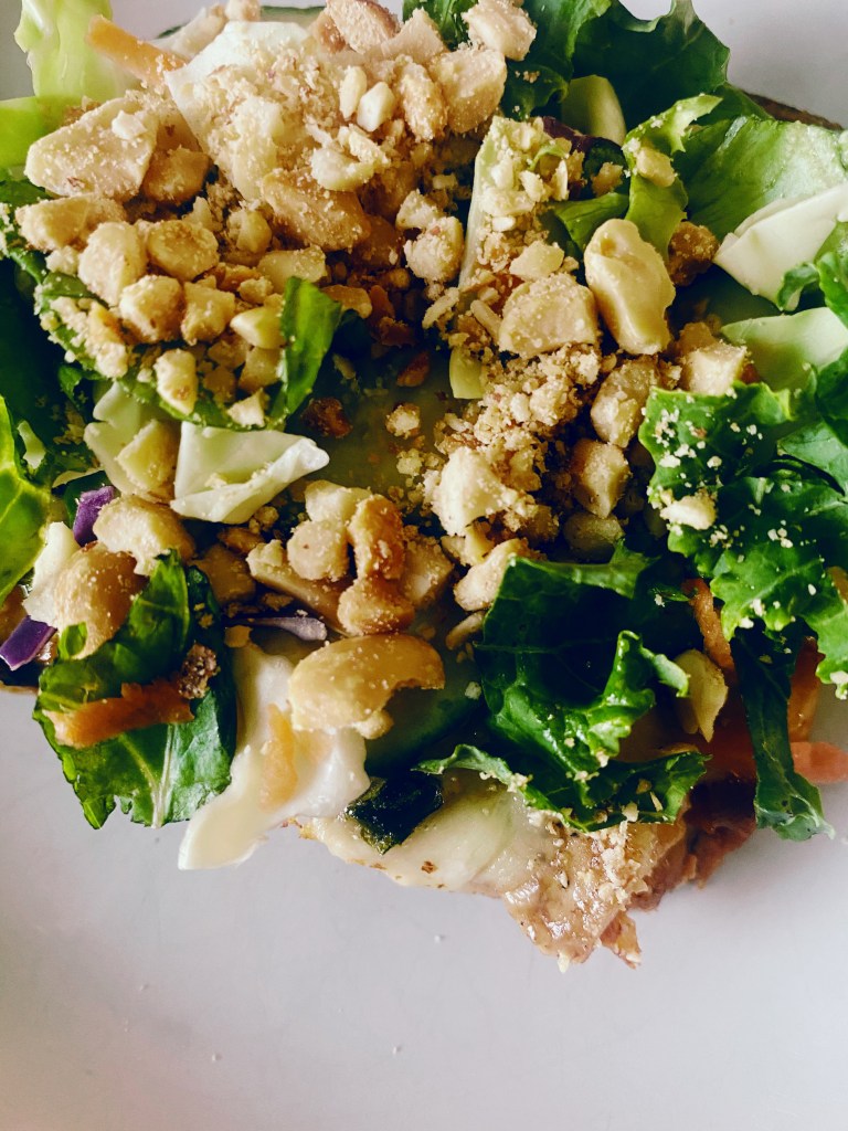 2 chicken breast marinated in a store bought Thai peanut sauce