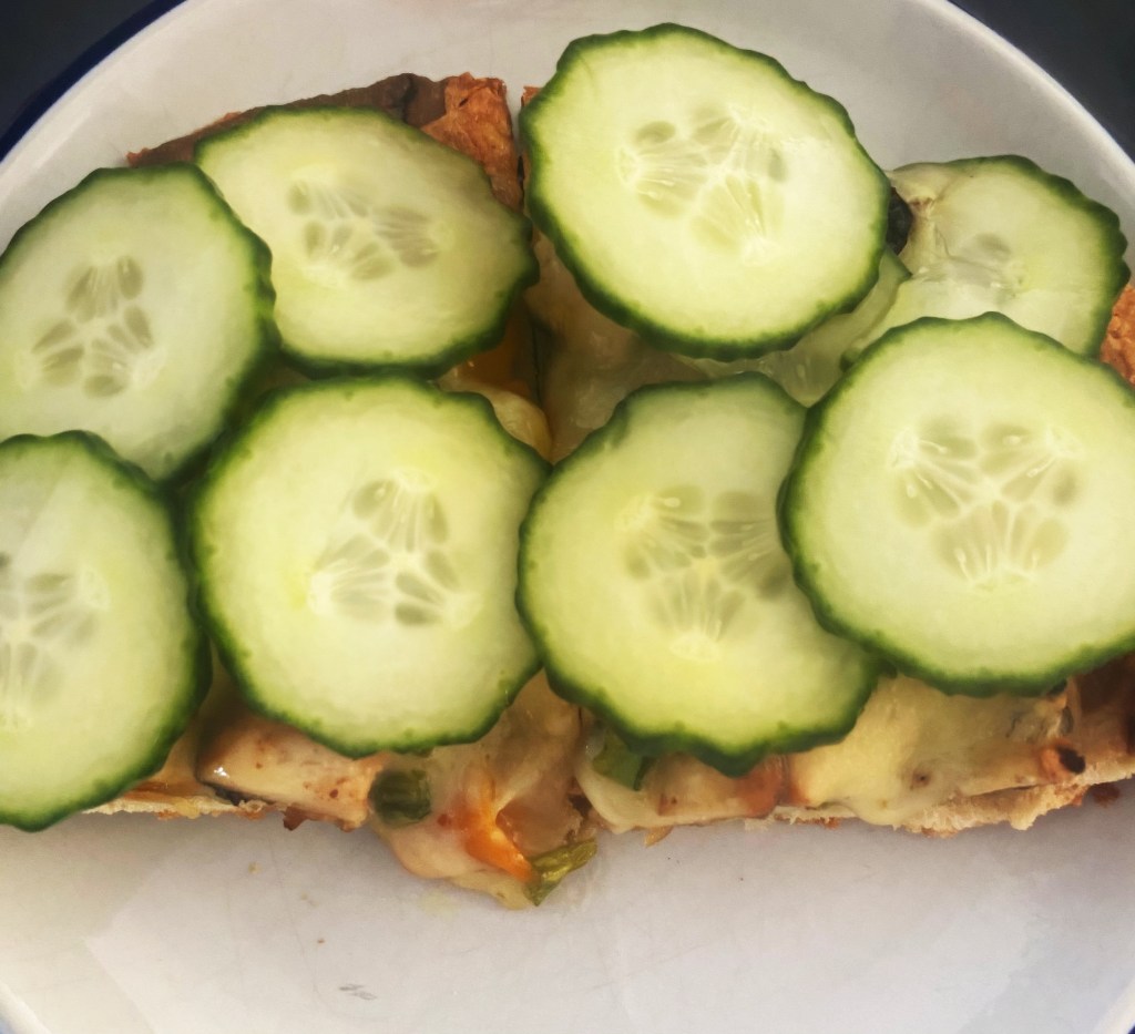 This pizza always makes me think of Seinfeld because Kramer wanted to open a make your own pizza place and have cucumbers as a topping. I relate a lot of things from my life to Seinfeld. This combo may sound weird but it is so yummy.